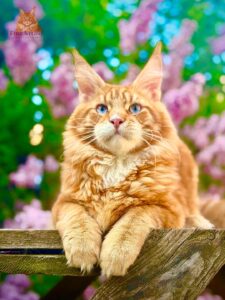 Flint: At 1.5 yr old, still growing… Imported from Russia. COLOR: Blue Eyed and red coat. We expect to get some beautiful blue eyed kittens from his blue eye gene as well as whatever eye colors the moms have. He was imported from Fire Stone Cattery in Russia and is a proven stud.